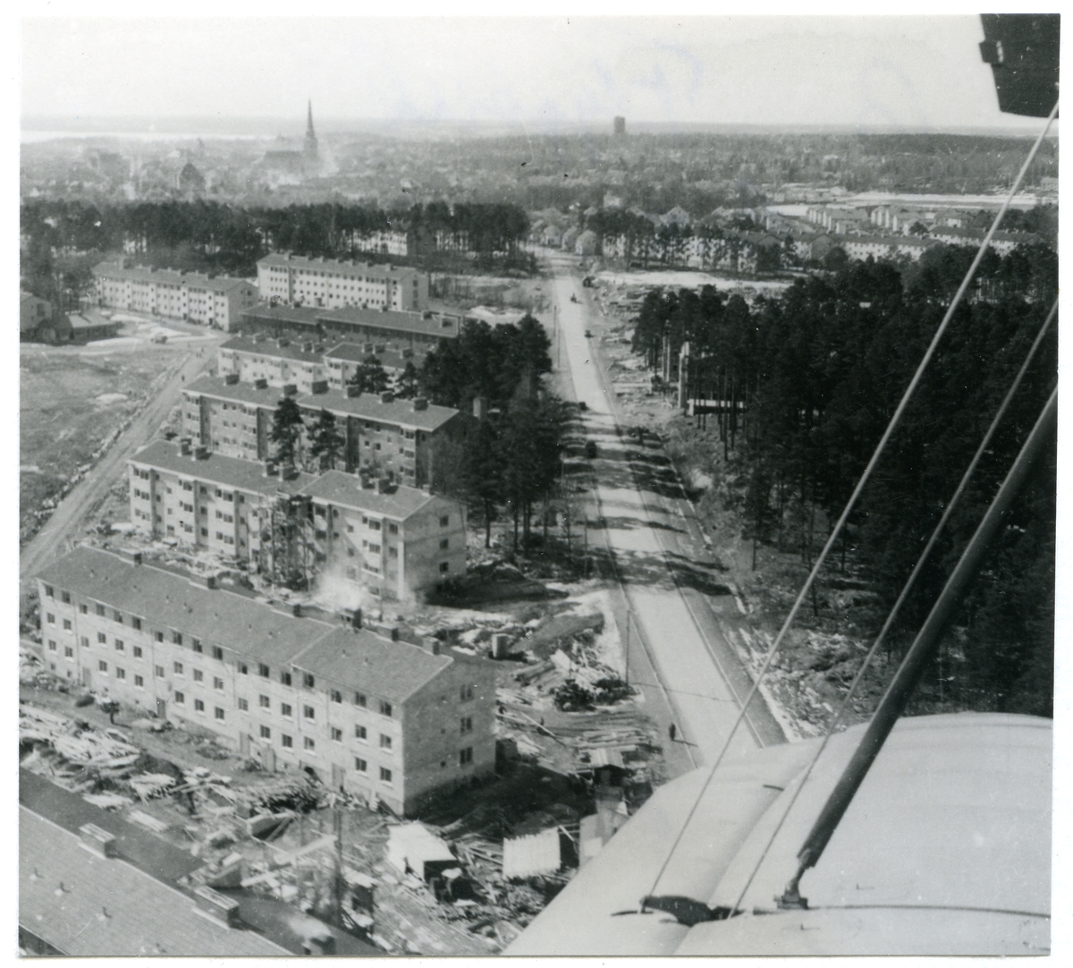 Flygfoto över parti mellan Aspvretsgatan och Bergslagsvägen, 1947.
