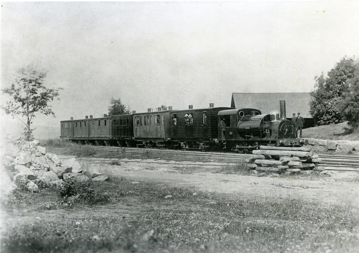 Ånglok med vagnar på spåret mellan Smedjebacken-Ludvika.