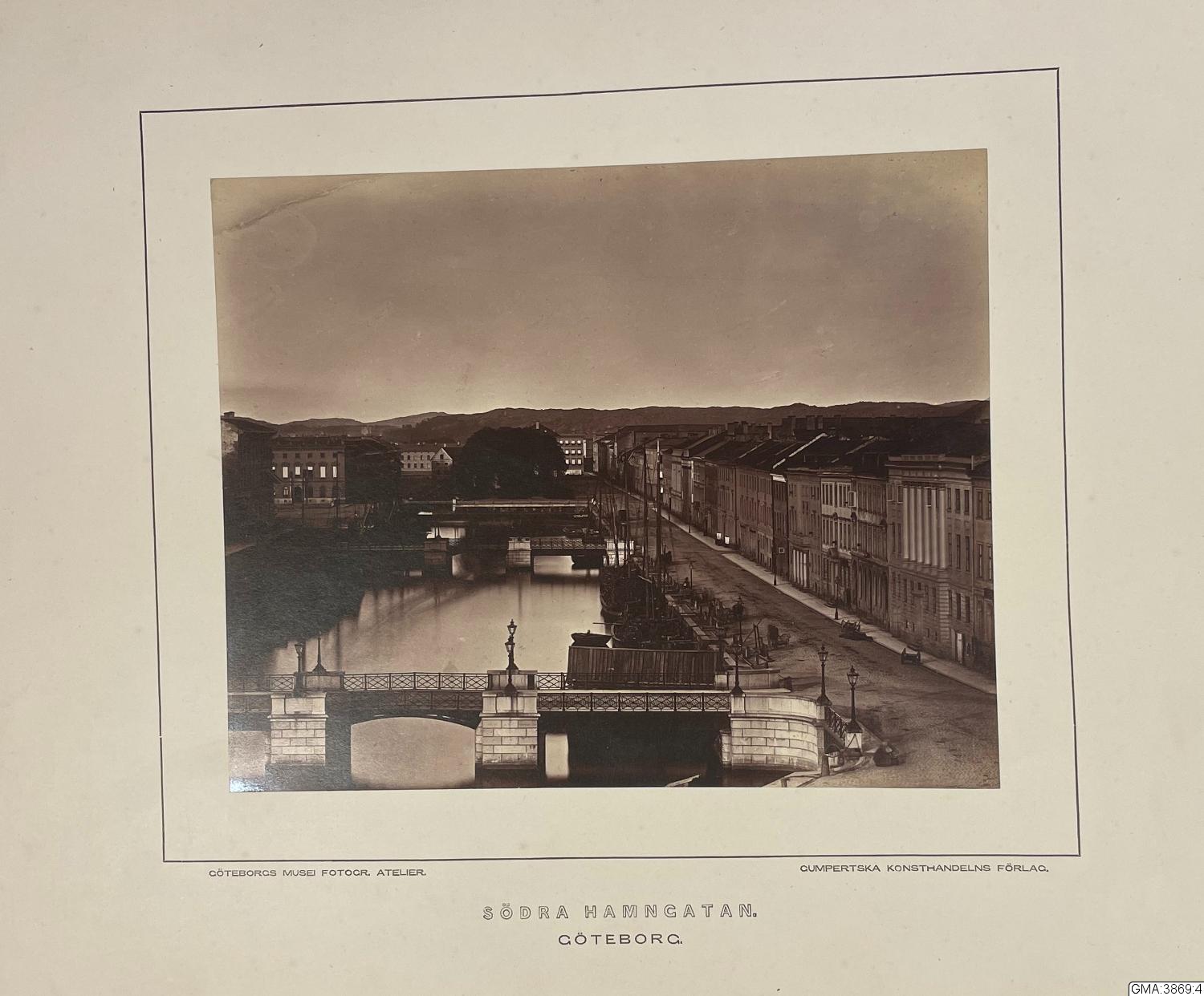 Södra Hamngatan (och Stora Hamnkanalen m.m.). sett mot öster fr. fastighet vid Lilla Torget. i förgrunden Kämpebron.