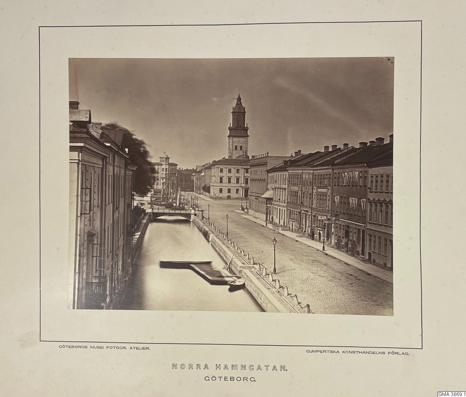Norra Hamngatan och Stora Hamnkanalen sedda mot väster från Hotell Göta Källare. Exemplar i Stadsbiblioteket bär årtalet 1871.