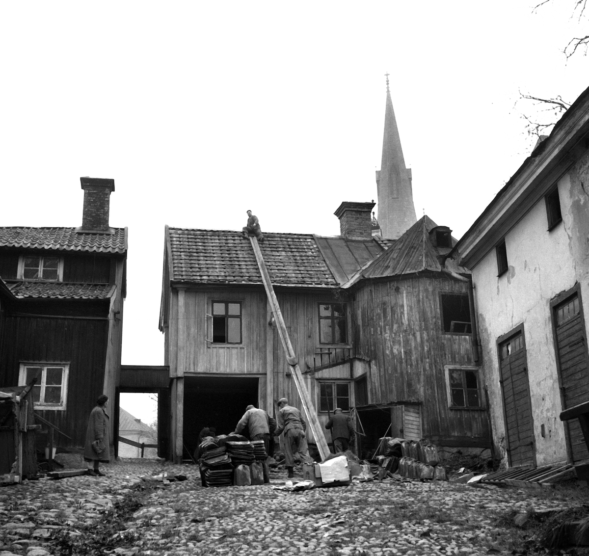 Nedplockning av taket på Handelsboden