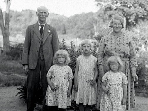 Johan Larsson med dotter och barnbarn. Asta, Karin och Rut (Nordström). Bilden är tagen utomhus.