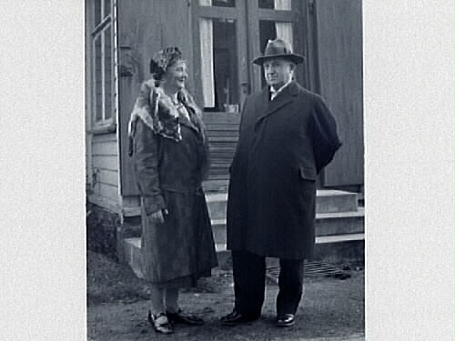 Maj Persson (osäkert) och Fredrik Winqvist fotograferade vid en trappa.