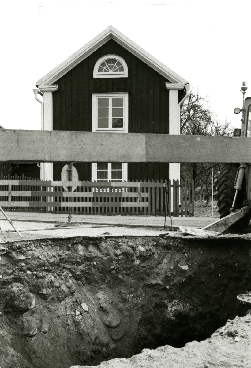 Gamla Staden i kvarteret Björken i kalmar. Schakt för serviceledning till nybyggnad på Västerlånggatan 31.