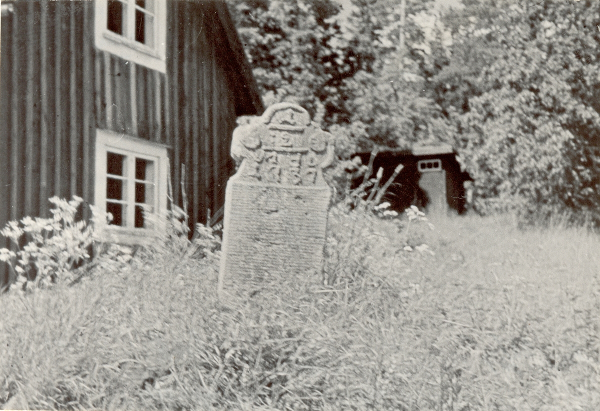 Milstenen vid "Kaffekullen". Stugan till vänster brann senare ned.