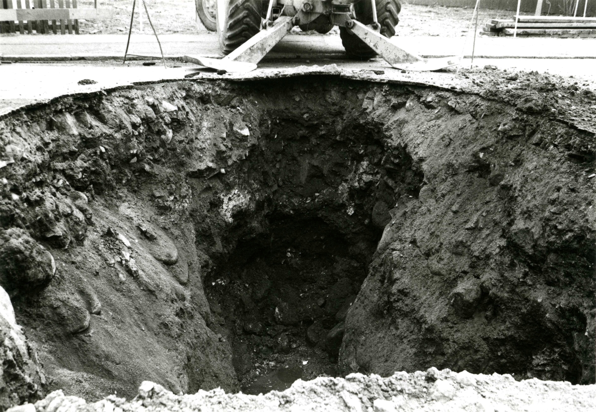 Gamla Staden i kvarteret Björken. Schakt för serviceledning till nybyggnad på Västerlånggatan 31.
