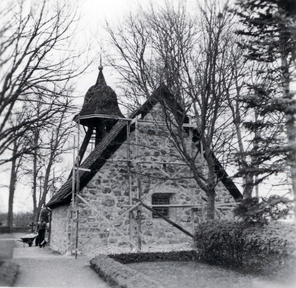 Arby kyrka. Likboden under byggnadsarbete 1958.