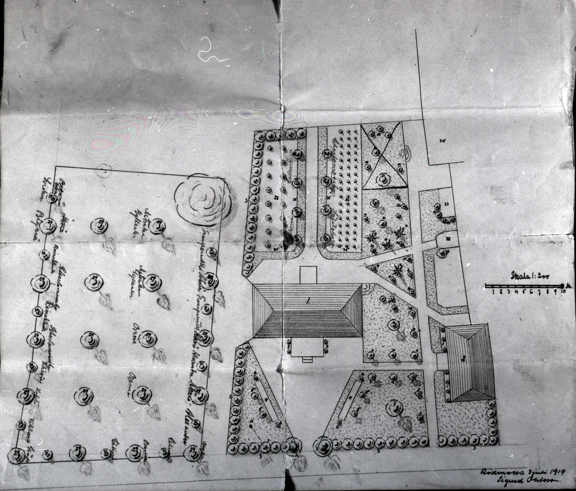 Planritning över trädgård i Rödmossa 3/7 1919.