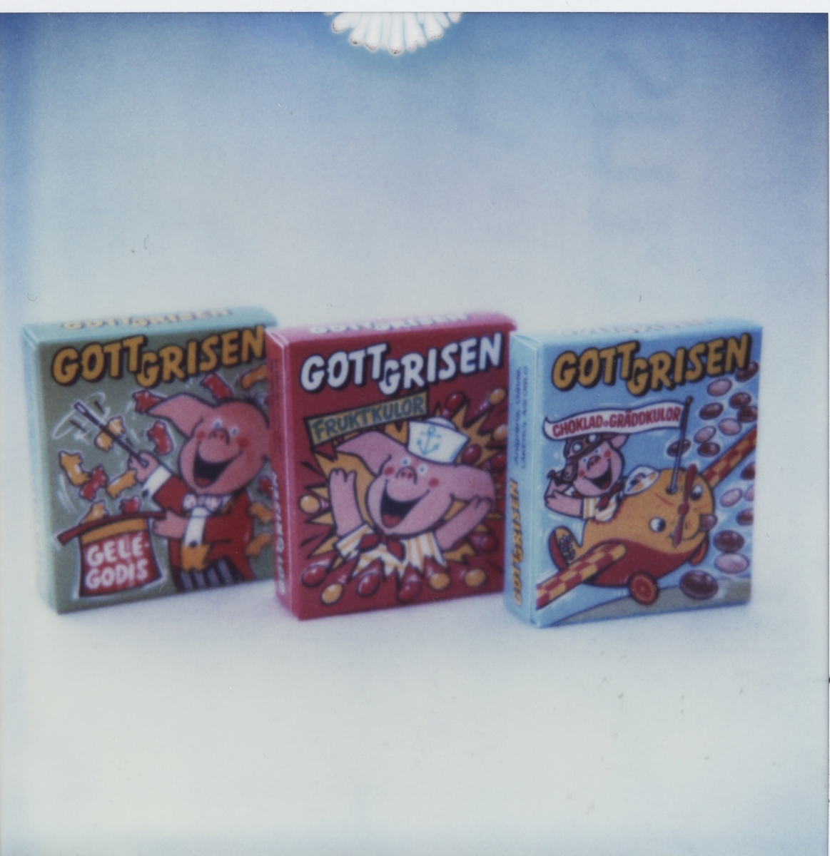 Gottegrisen askar. 3 olika smaker. Gelégodis, Fruktkolor samt chokladgräddkulor.