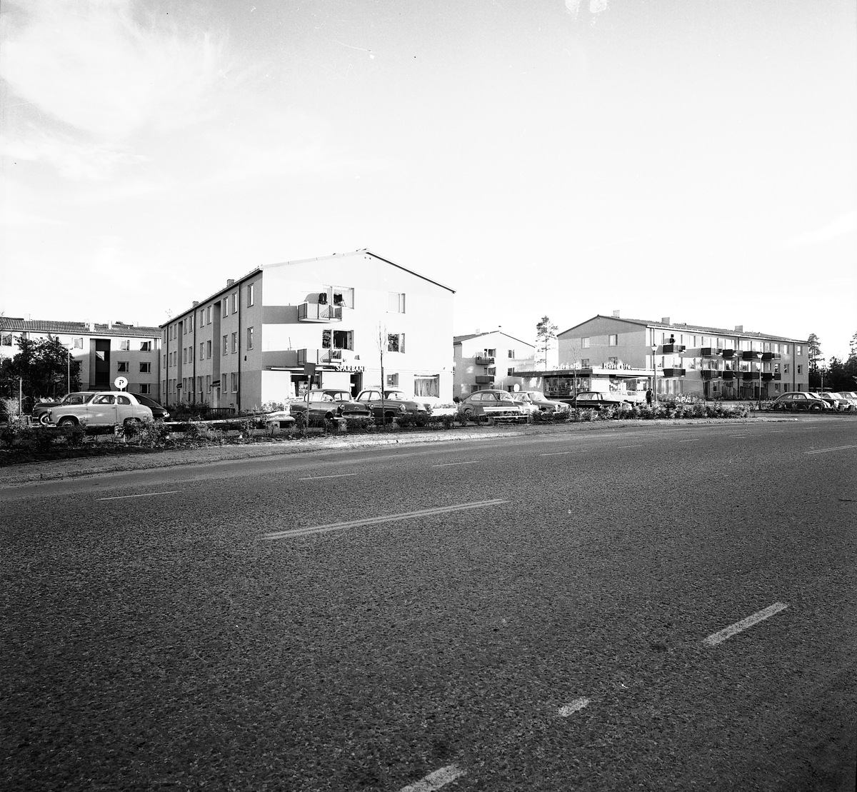 Valbo Centrum med Sparbank och Lisas garnbod i hörnet, Konsum Alfa.