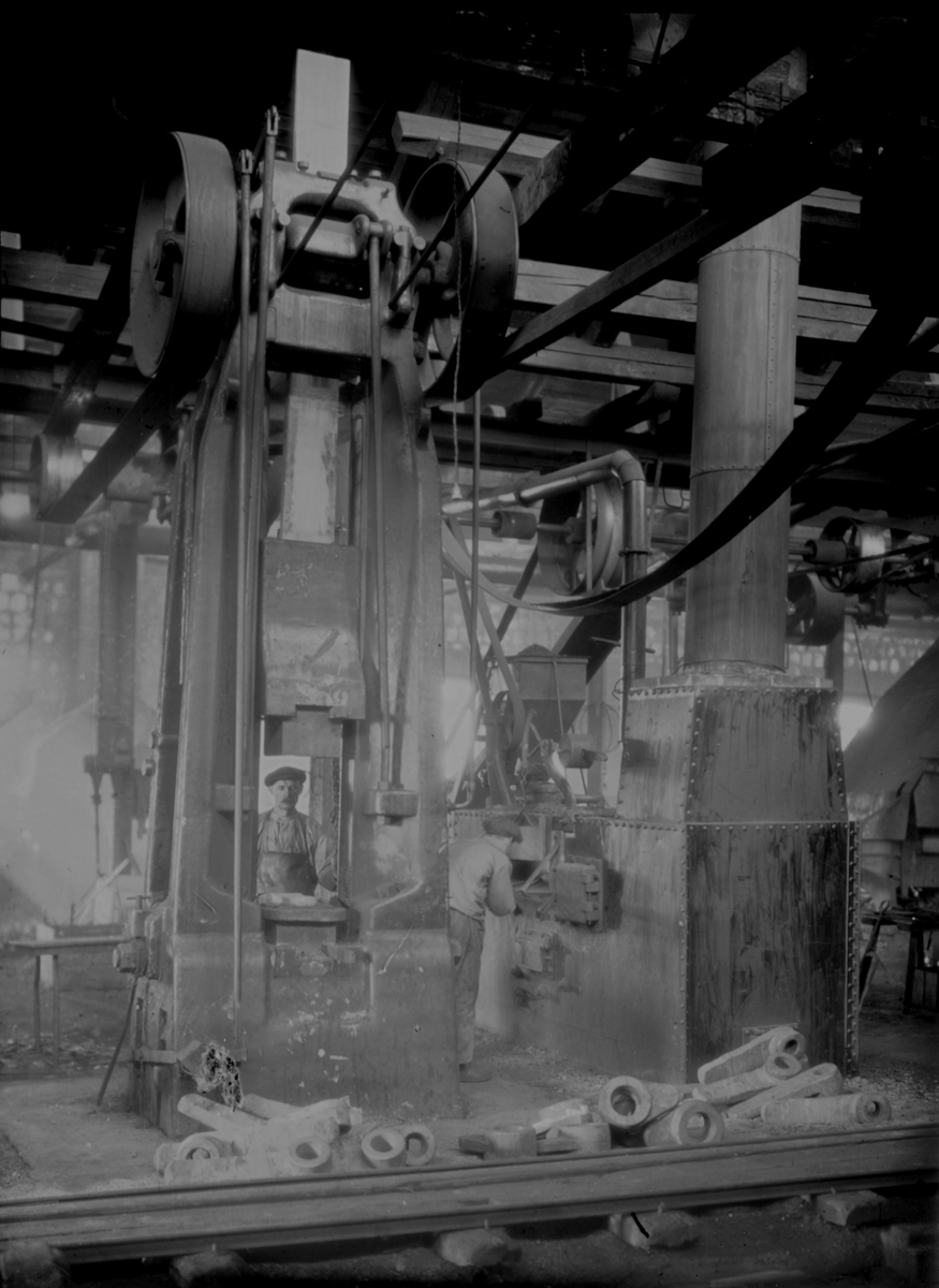Forsbacka Steel-Works. Smedjan. Sedan 1600-talet har järnhantering varit ortens huvudnäring. Flera valsverk uppfördes mellan 1872 och 1904