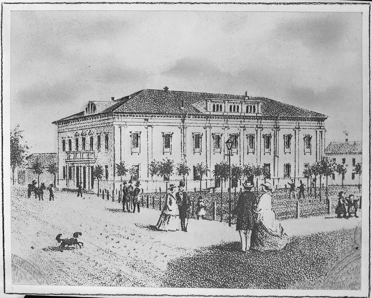 Spektakelhuset i Gävle. Teaterhus byggt 1840-tal som nedbrann 1869 i samband med Gävle stadsbrand.