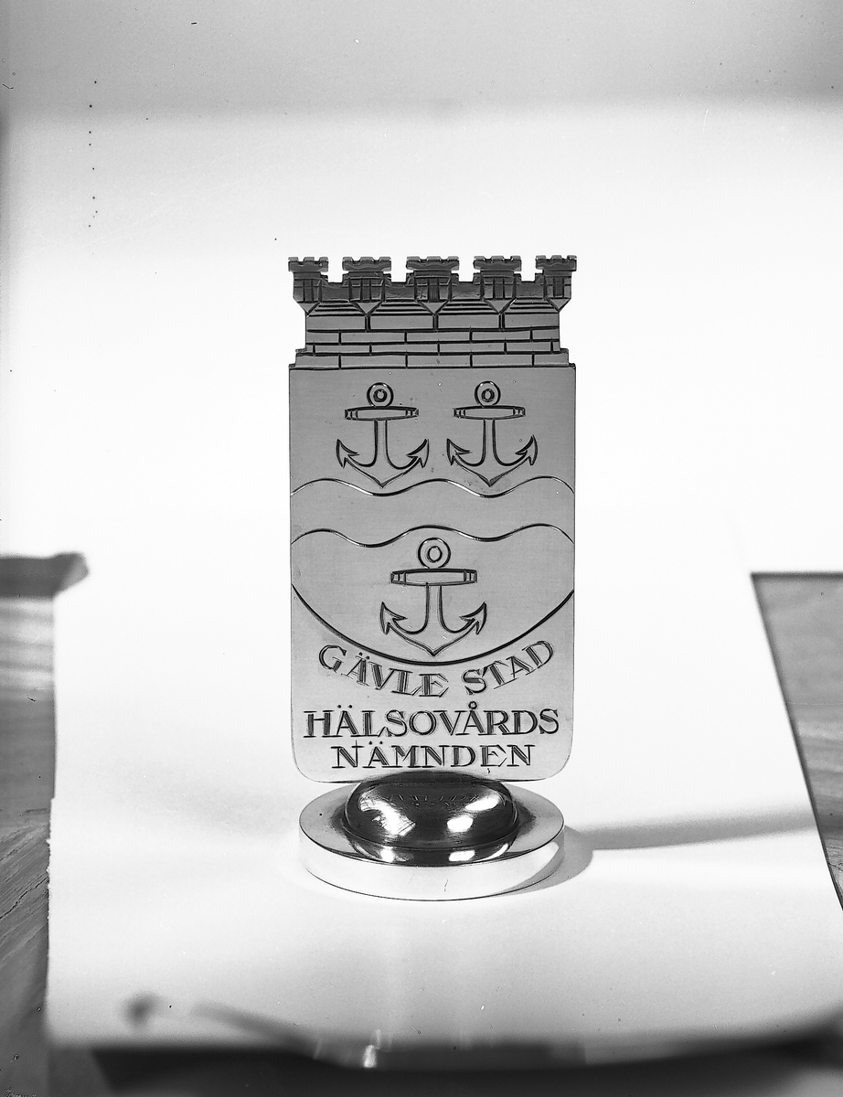 Den 12 juli 1954. Juvelerare Wahlberg. Gävle Stad Hälsoämnden. Sigill