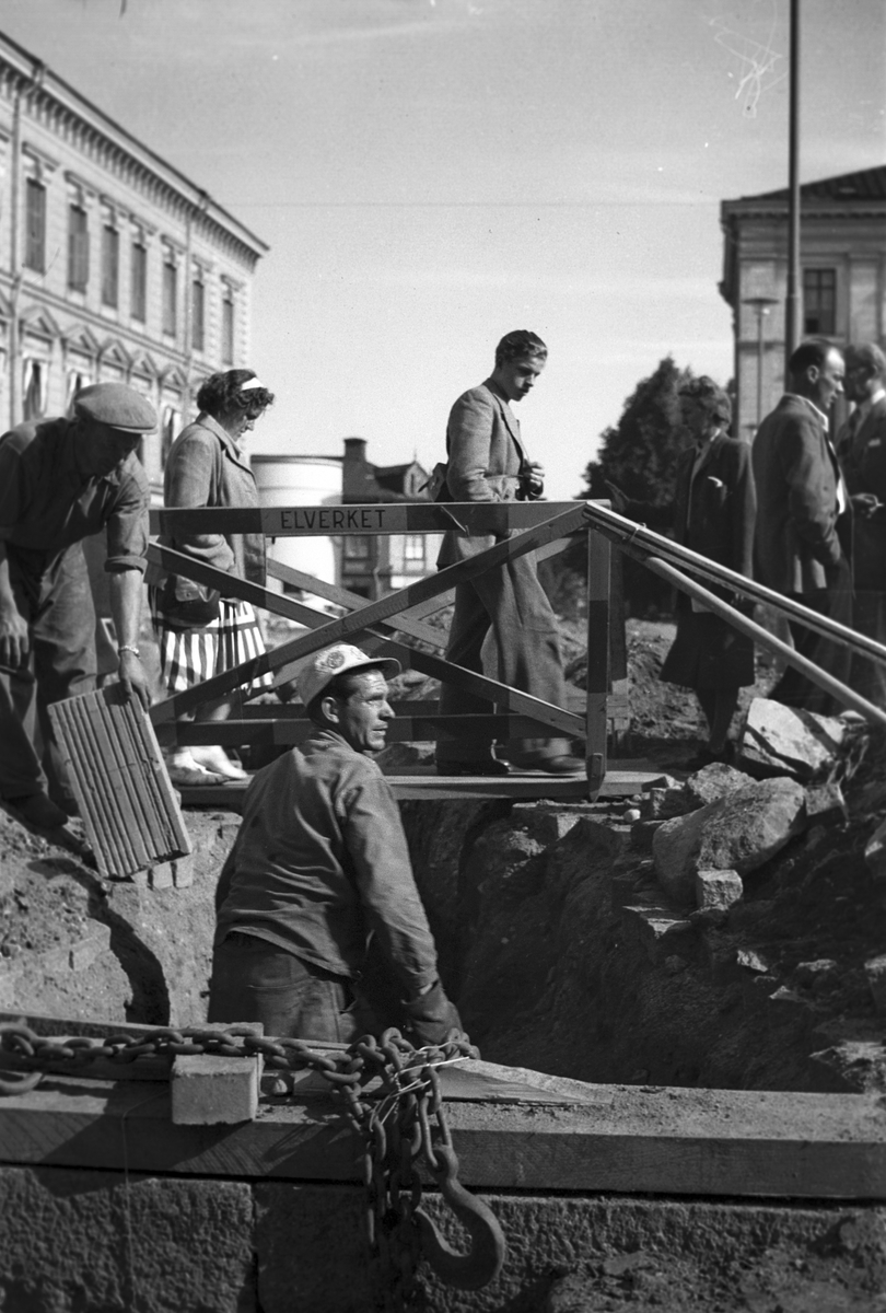 Titel: Gatuarbete på Drottninggatan. 1948. Reportage för Gefle Dagblad.