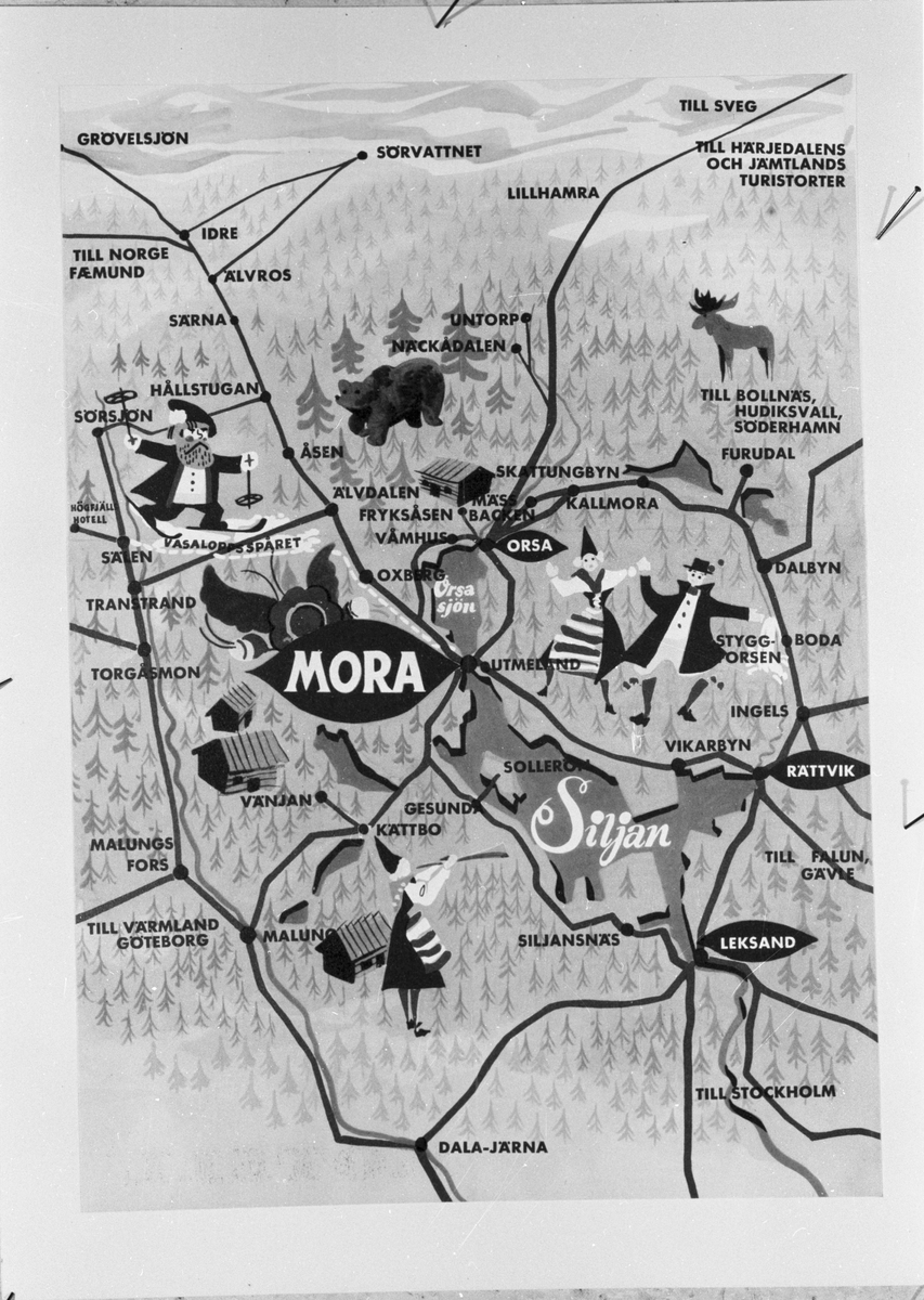 Esselte. Karta över platser runt Siljan. Augusti 1954.
