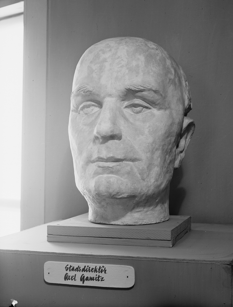 Gävleutställningen 1946. Konstnär: Maggie Wibom. Skulptur på stadsdirektör Axel Gamitz