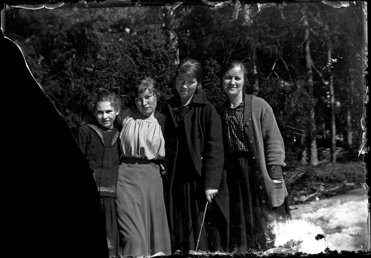 Fyra kvinnor i skogen. Nummer tre från vänster, Julia Westergren.
