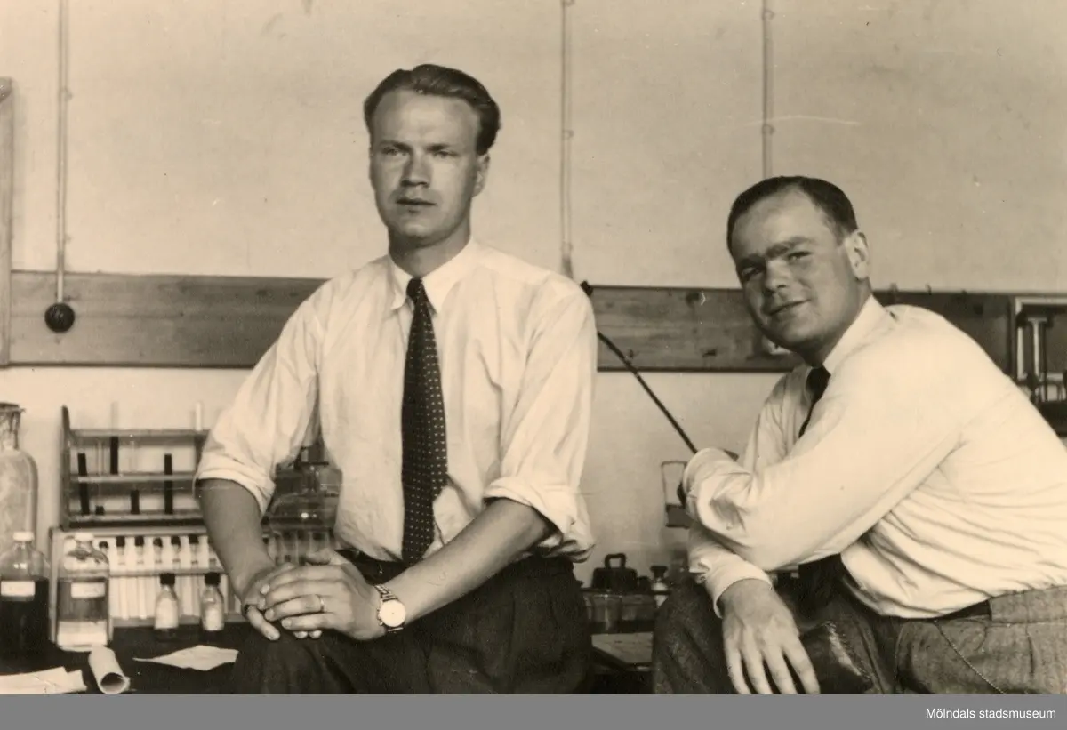 Bertil Gilsenius och Tage Andreasson i SOABs oljelaboratorium 1940-tal.