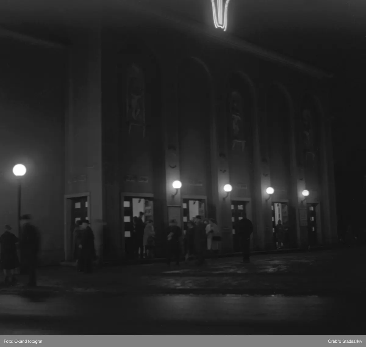 Kvällsbelysningen tänd vid Konserthuset, 1960