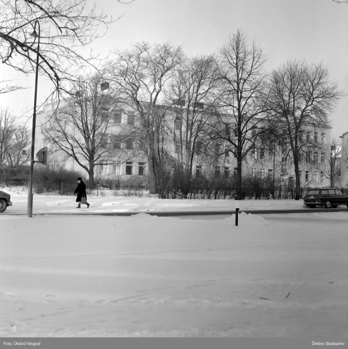 Vasaskolan dolt bakom småträd, 1960