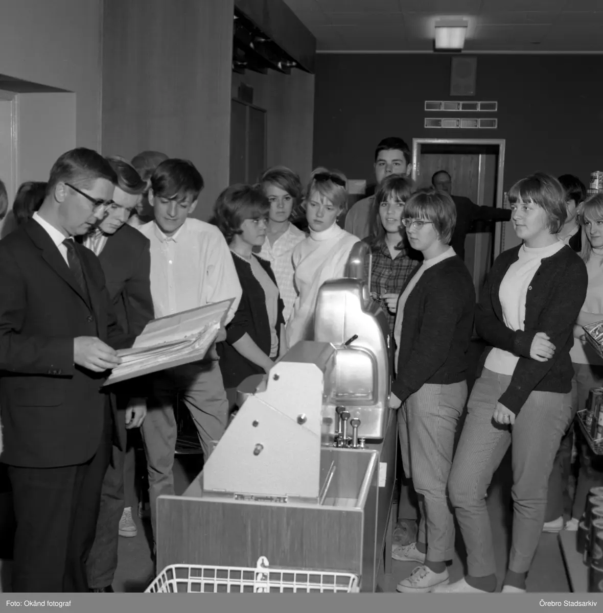 Elever lär sig kassahantering på Virginska skolan, 1960-tal