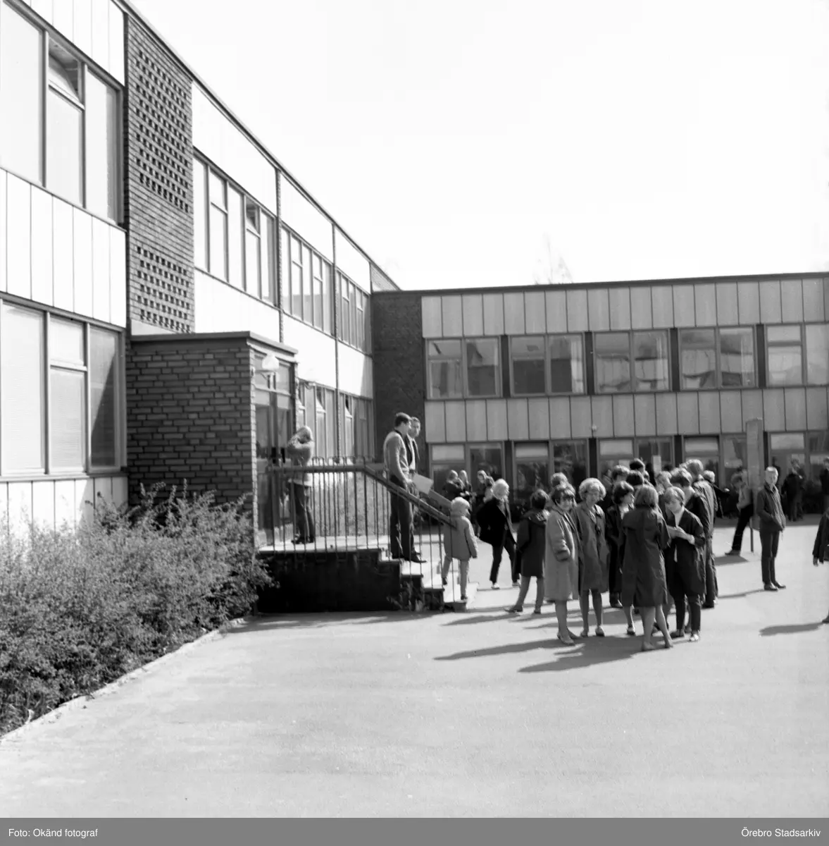 Elever vid Birgittaskolas entré, 1960-tal