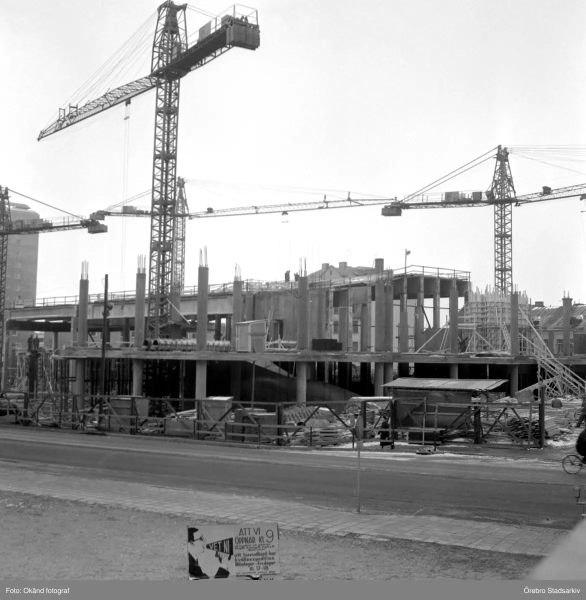 Lyftkranar över Medborgarhuset under byggnation, januari 1964
