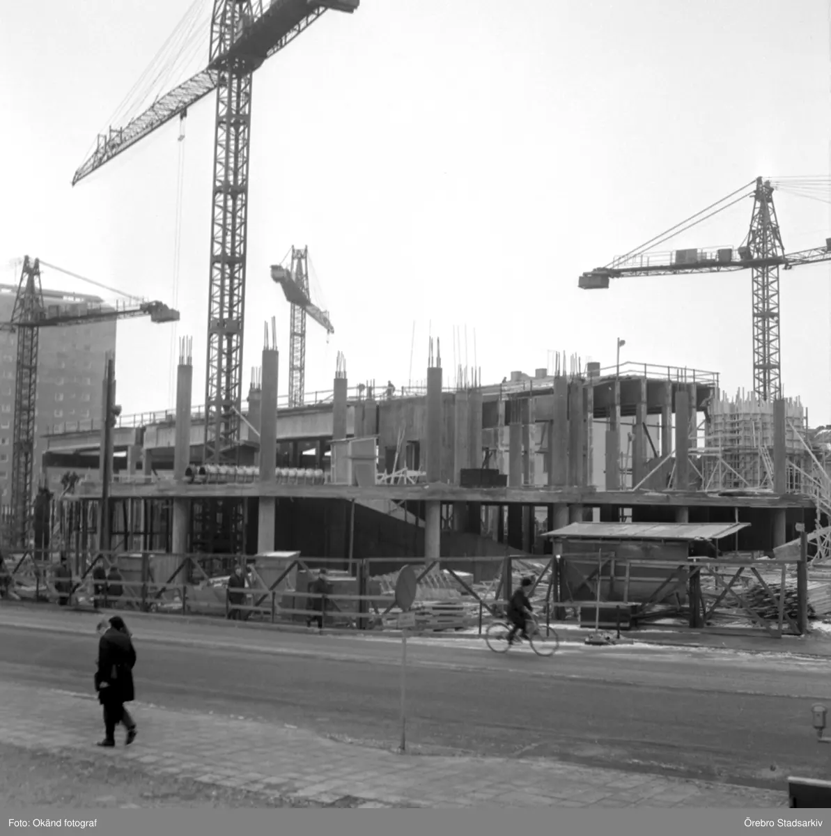 Medborgare passerar Medborgarhuset under byggnation, januari 1964