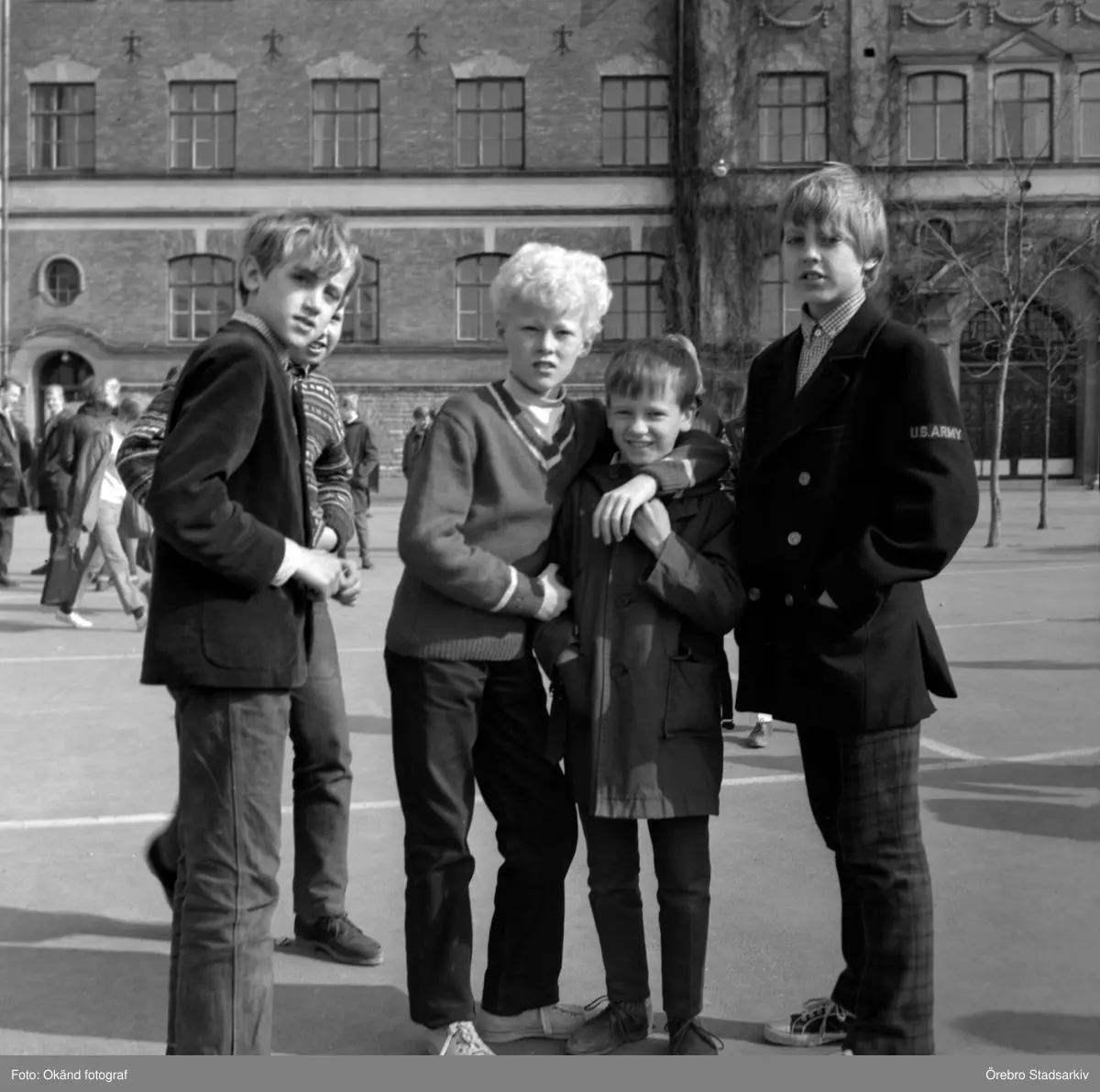 Gossar på Olaus Petriskolans skolgård, 1960-tal
