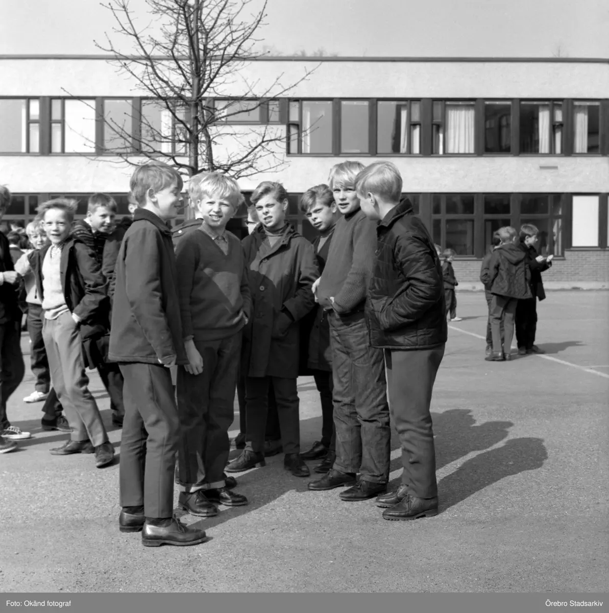 Ett gäng elever på Olaus Petriskolans skolgård, 1960-tal