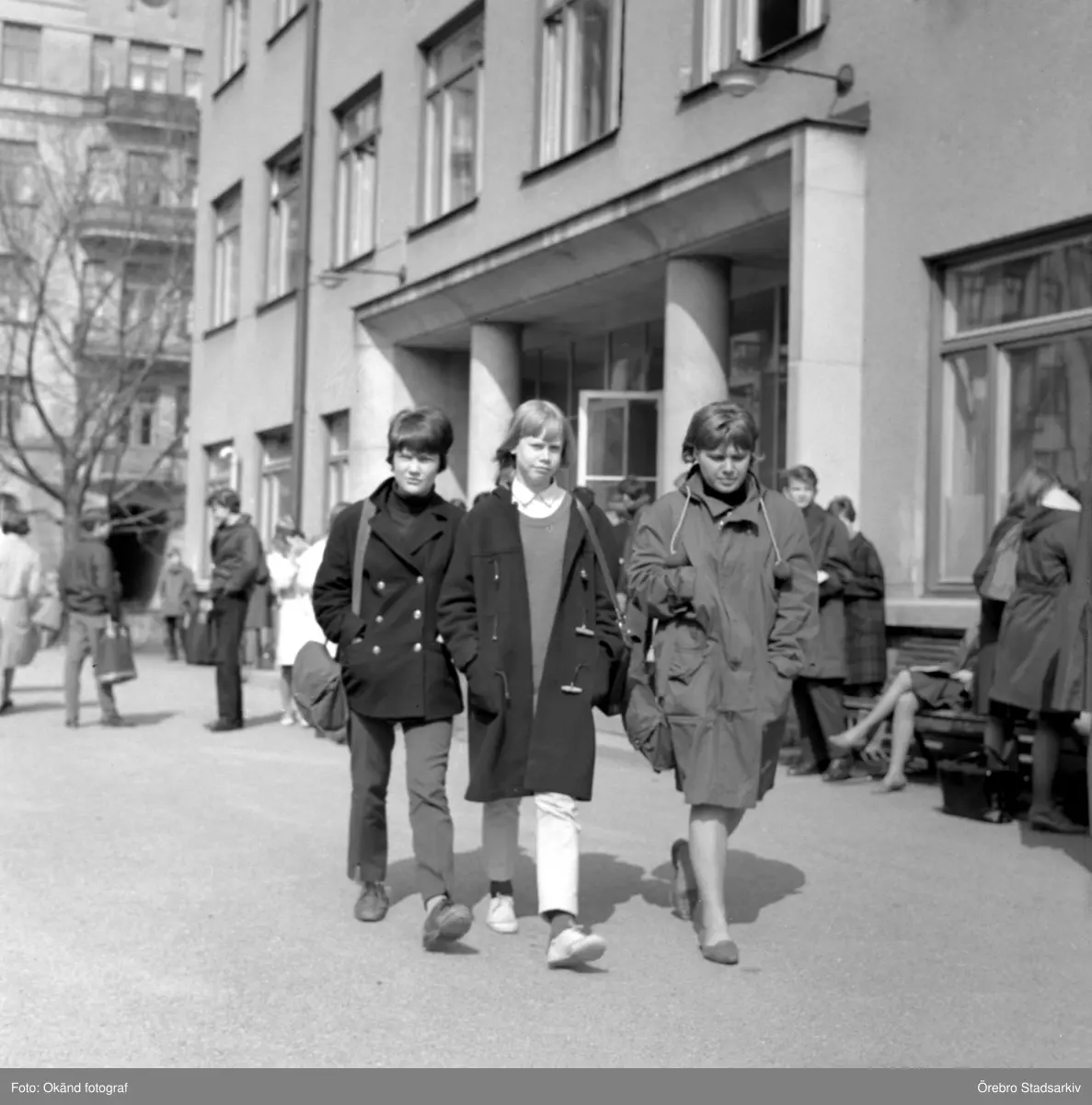 Elever vid Nikolai läroverk på promenad, 1960-tal