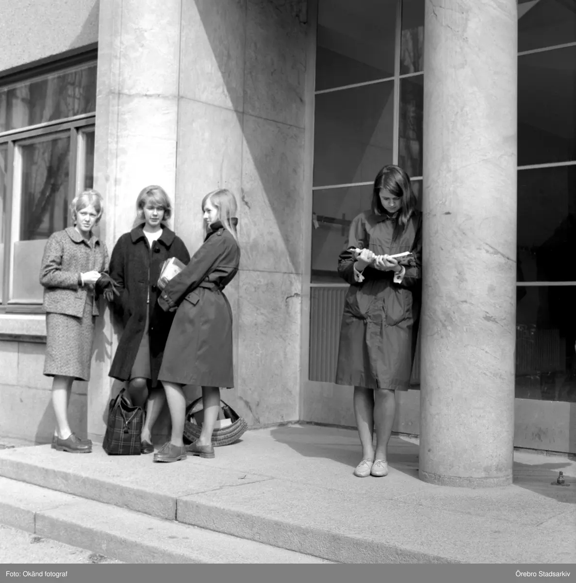 Elever väntar på trappan till vid Nikolai läroverk , 1960-tal