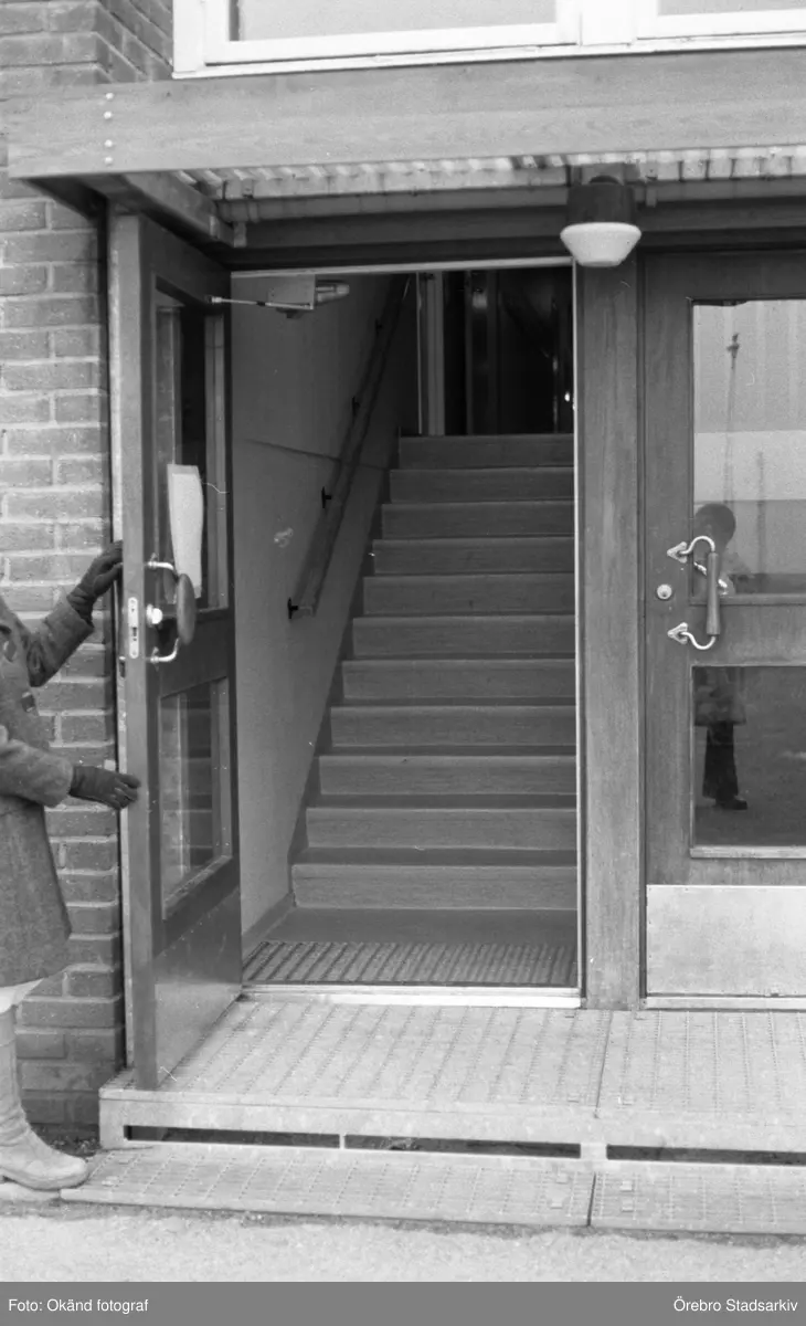 Entrédörr på Garphyttans skola i Garphyttan, 1974