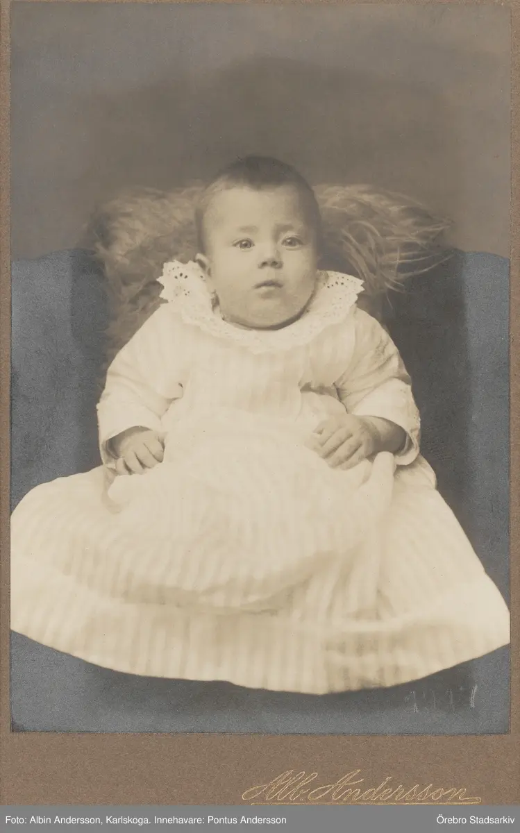 Porträtt av ett litet barn med klänning i Karlskoga, 1917