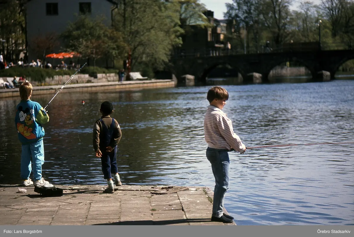 Fiske i Svartån vid centralparken, 1989