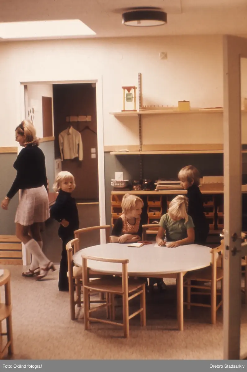 Barn med personal på daghem i Brickebacken, 1972-09-28