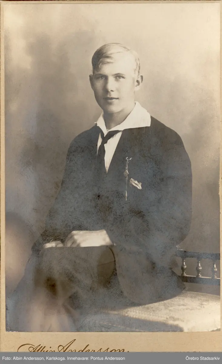Porträtt av en ung man med klockedja i Karlskoga, 1918