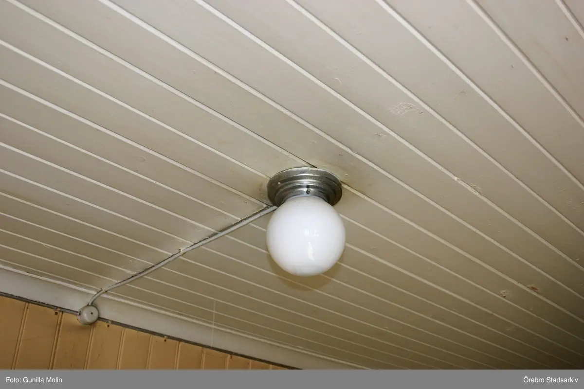 Taklampa i övre hallen i Trappräcke på övervåningnen i trähus i Sånnaboda, Tysslinge, 2007-03-21