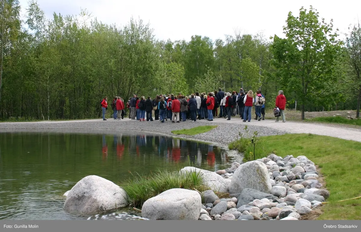 Samling vid skogskanten vid Naturenshu på Miljöombudens dag, 2007-05-10