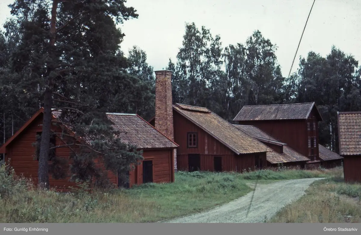 Flera byggnader vid rödfärgsverket i Dylta Bruk, 1984
