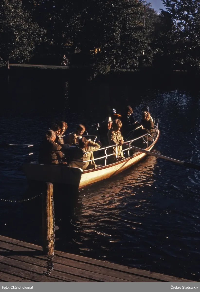 Färjan Wiktoria lämnar bryggan i Stadsparken, 1980-tal