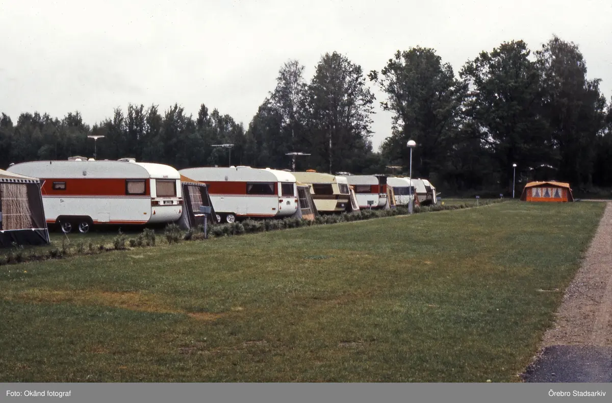 Flera husvagnar och ett tält Hampetorps camping, 1980-tal