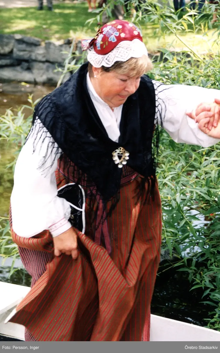 Landshövding Gerd Engman får stöd på Det stora kakkalaset på Skansen i Stockholm, 1998
