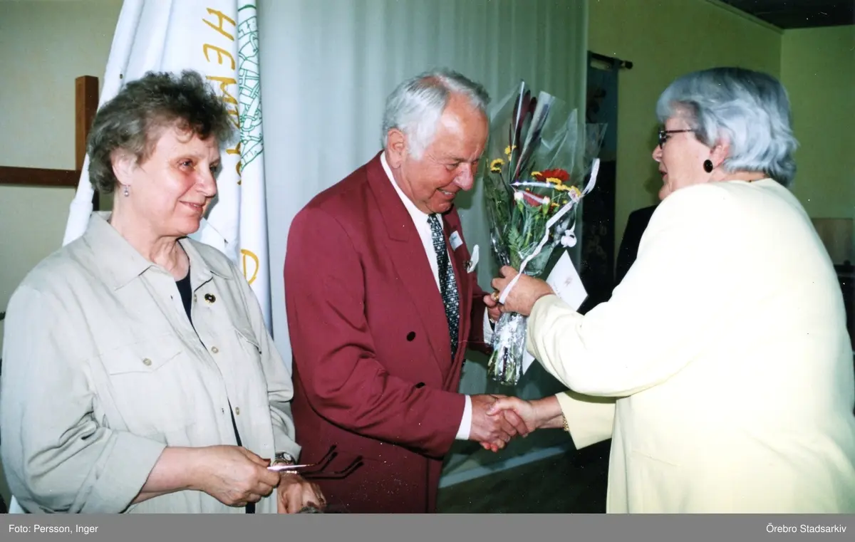Överlämnande av blommor på Örebro läns hembygdsförbunds årsstämma i Karlskoga, 2002-05-11
