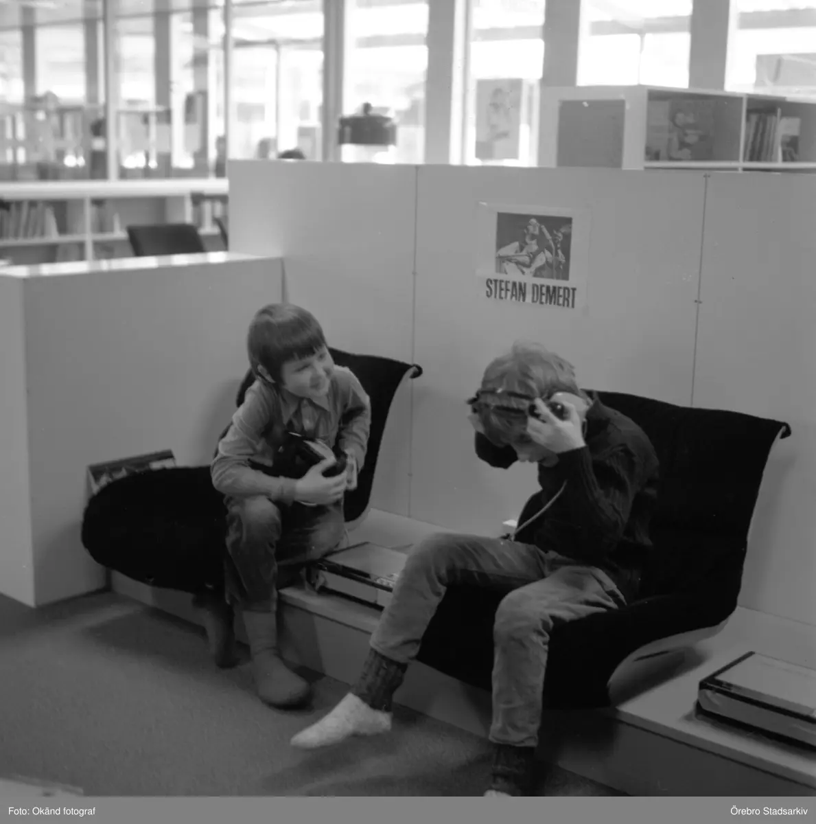 Barn lyssnar på musik i Brickebackens bibliotek, 1970-tal