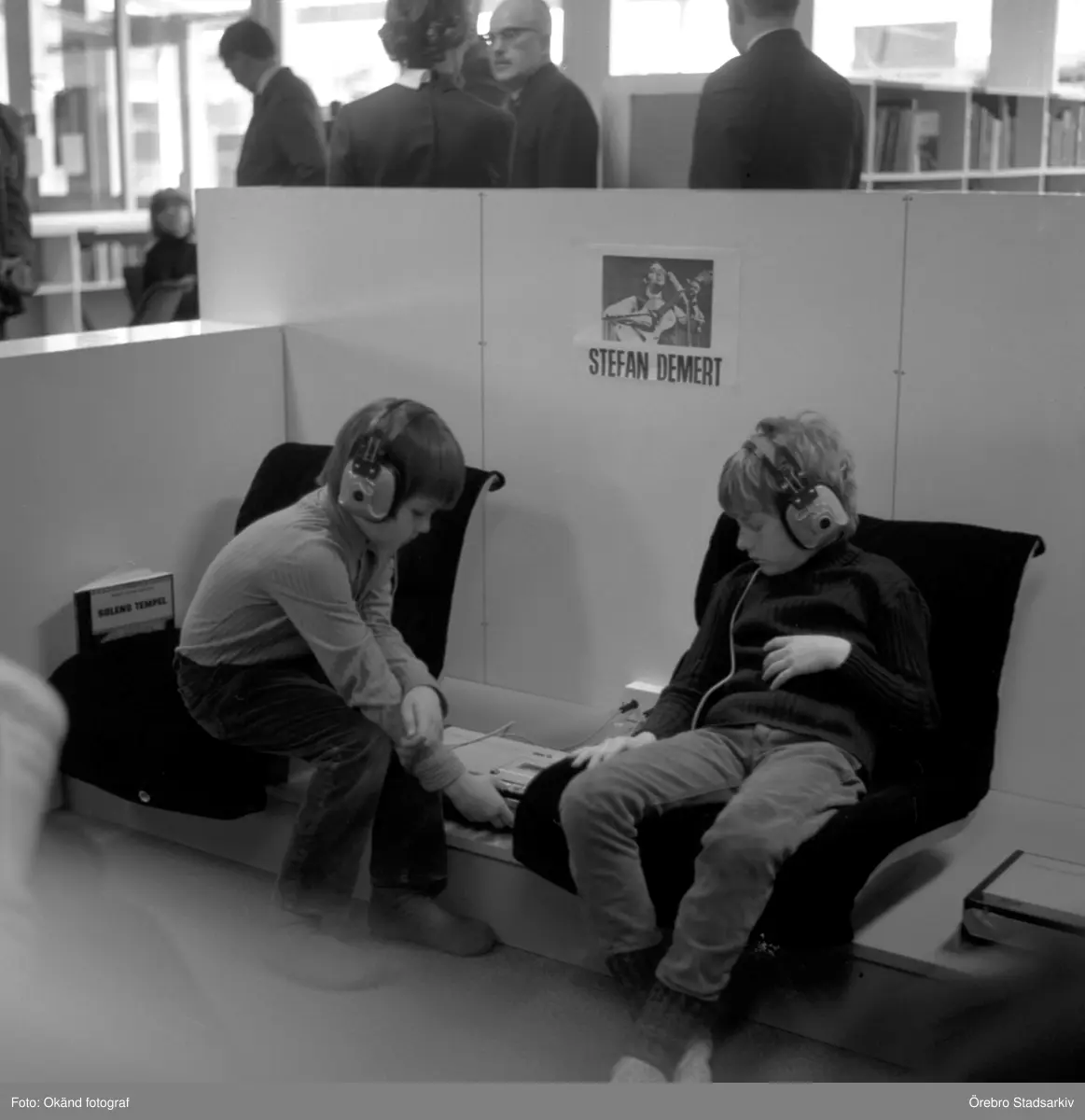 Musikhörna i Brickebackens biblioteket,1970-tal