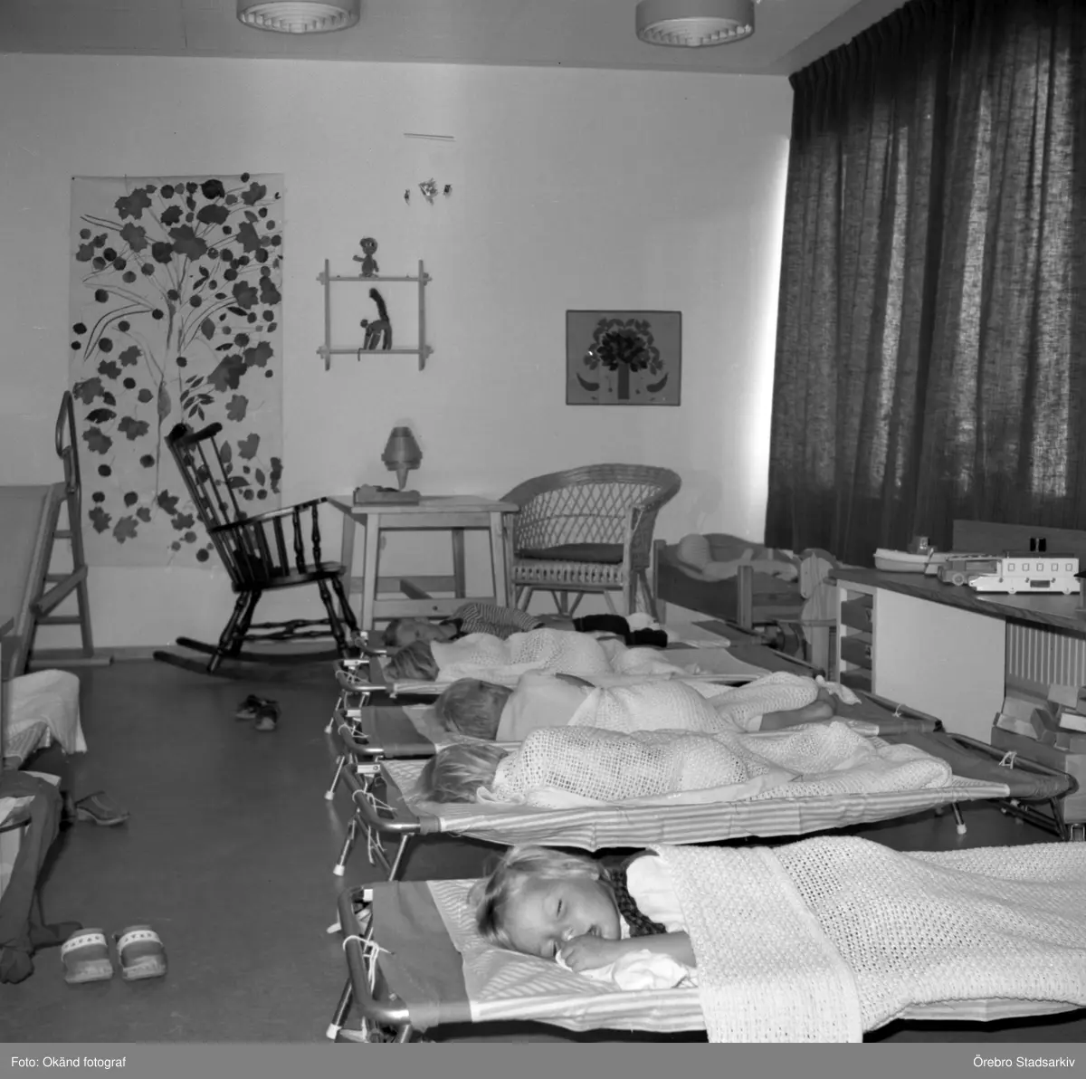 Barnen sover på vila på daghem i Varberga, oktober 1967
