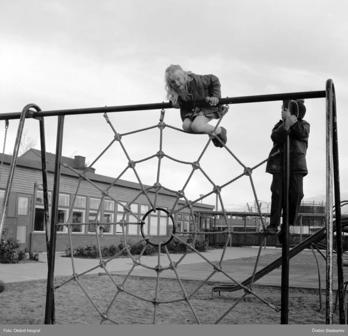 Lekande barn i spindelnätet vid daghemmet Sidensvansen, oktober 1967
