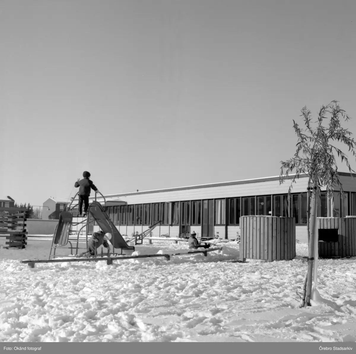 Barn vid lekplats vid daghem i Varberga, oktober 1967