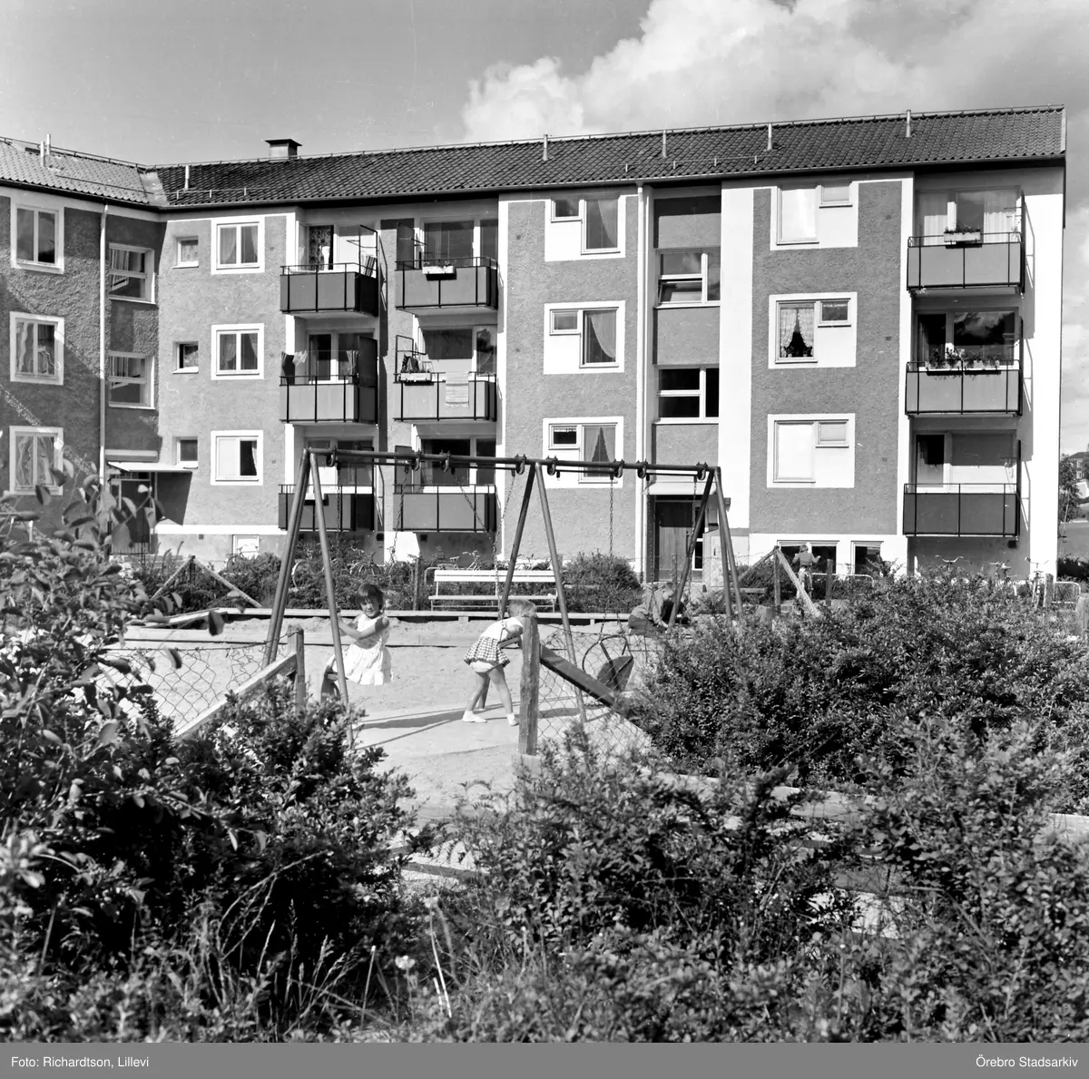 Flickor gungar på lekplats i Baronbackarna, 1960-tal